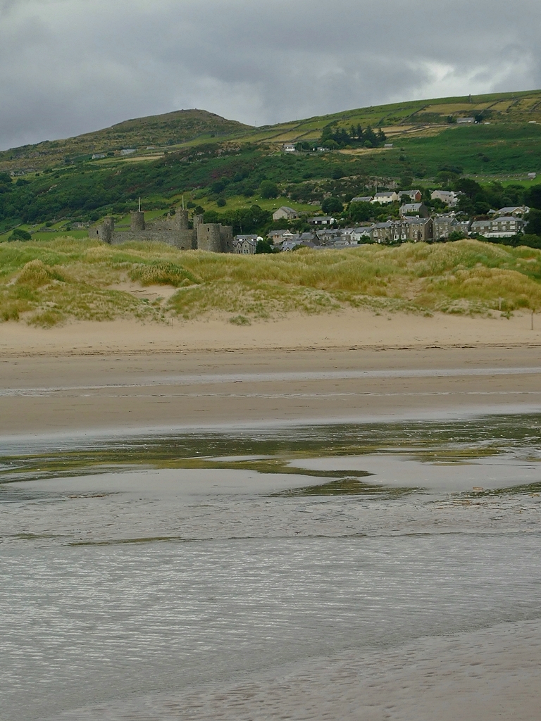 Zamek Harlech i wzgórze Moel Goedog z plaży Morfa Harlech July 22, 2015 768 × 1024 Wędrówka z megalitami