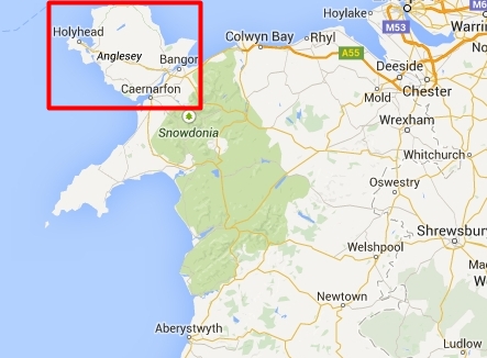 Anglesey na mapie Walii